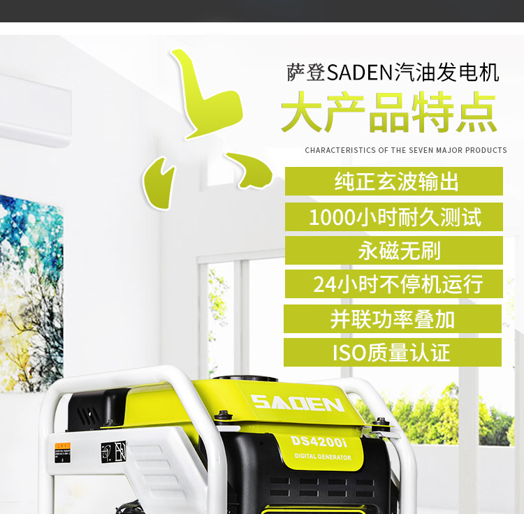 薩登小型發電機3kw數碼變頻發電機小型手提汽油無人機充電戶外露營應急電源